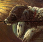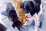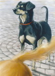 Groep: honden. Naast mystiek en dreiging, laat ik ook de dagelijkse dingen en de schoonheid van het dier in mijn olieverfschilderijen zien. Mijn eigen asielhonden en asielkat zijn hier o.a. mijn inspiratiebronnen voor, om bijvoorbeeld het karakter en het gedrag tussen de honden onderling vast te leggen.